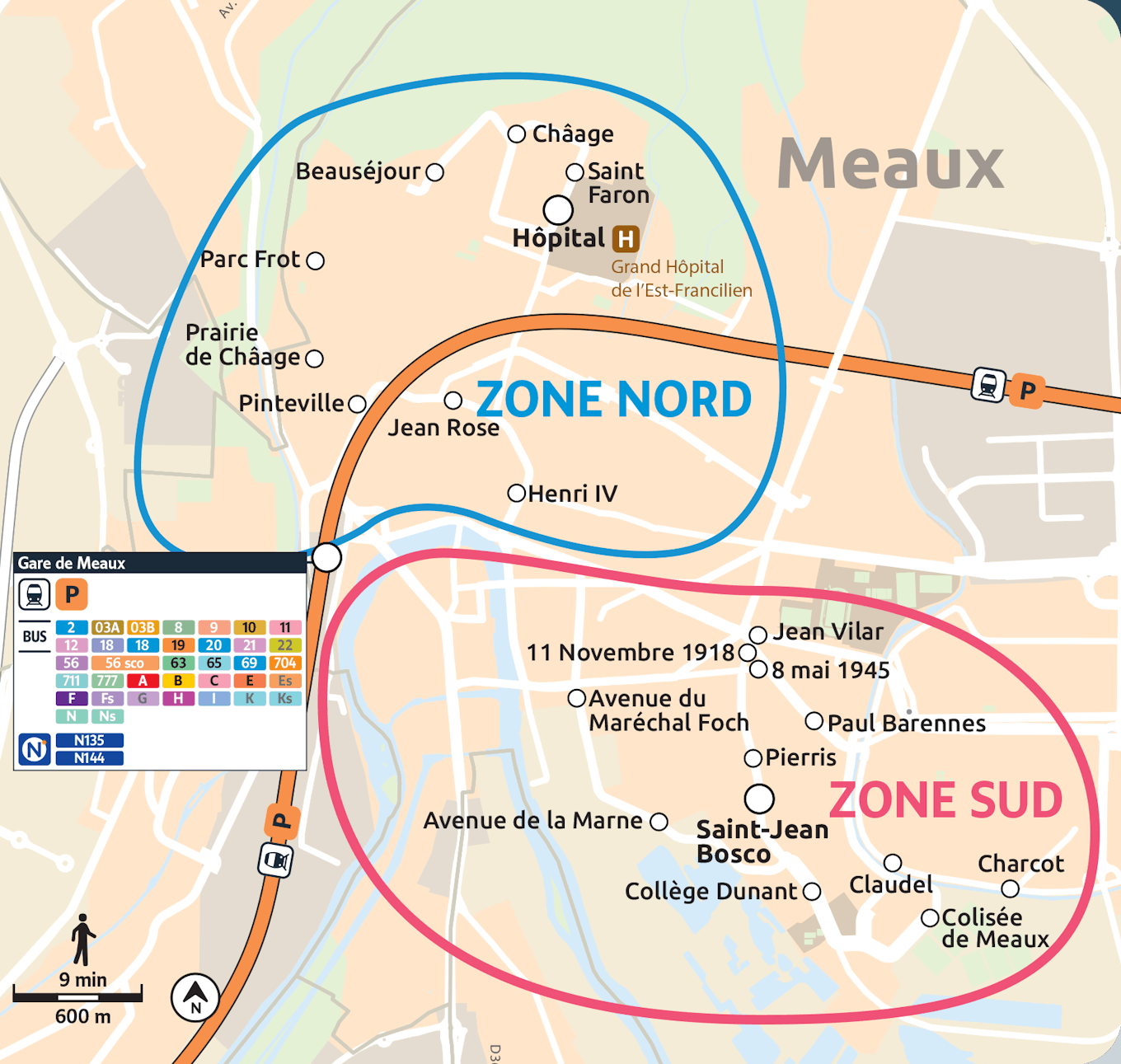 A, B, C, D, E, Es, F, Fs, G, H, I, J, Js, K, Ks, L, Ls, M, Ms, N, Ns, P, Q, Qs, 4, 4A, 4B, 10, 11, 22, 19, 21, 21sco, 23, 63, 65, 777, Express 20, Express 69, N141, Soirée Meaux Nord, Soirée Meaux Sud : Meaux