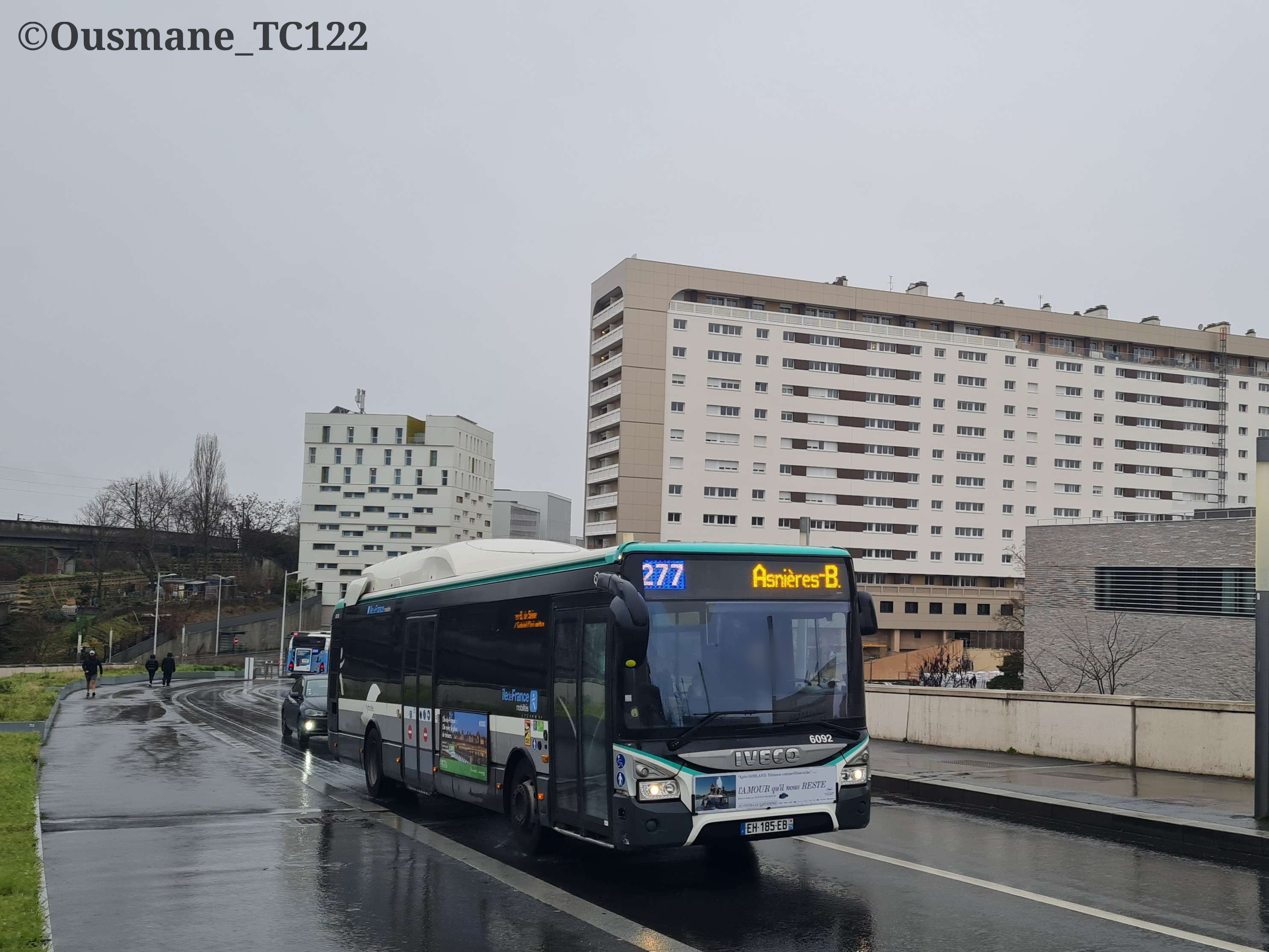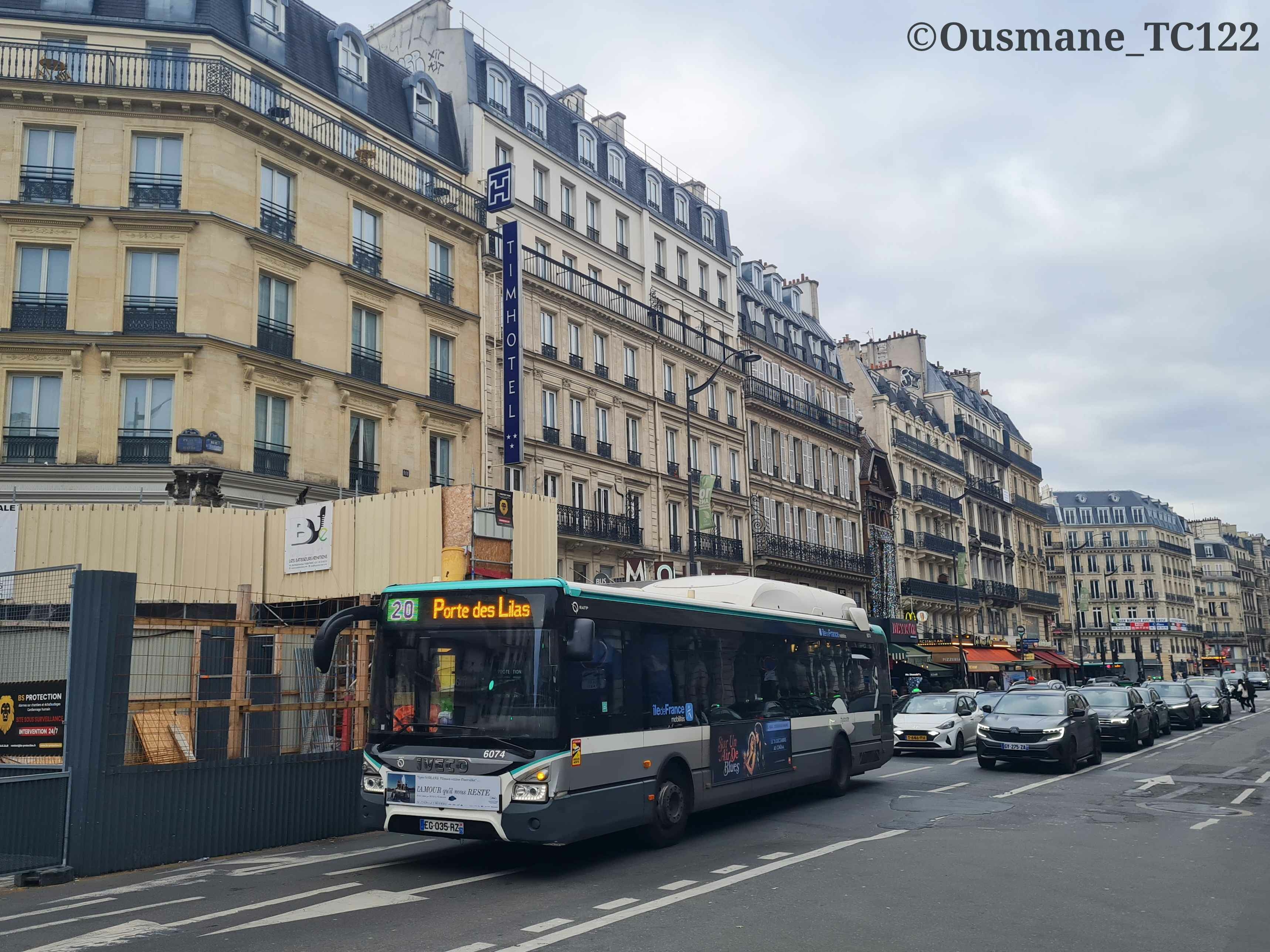 L'Iveco Urbanway 12 Hybrid n°6074 immortalisé sur la ligne 20 de la RATP le 1er Janvier 2026 à la Gare Saint-Lazare (75).